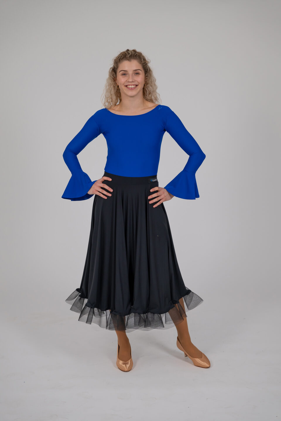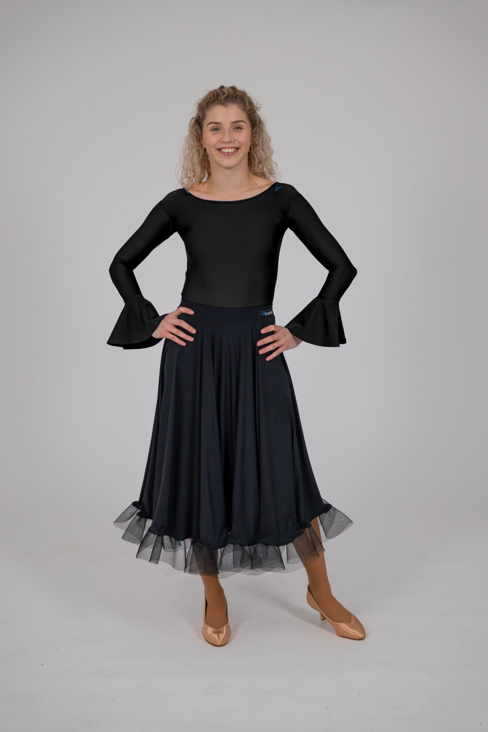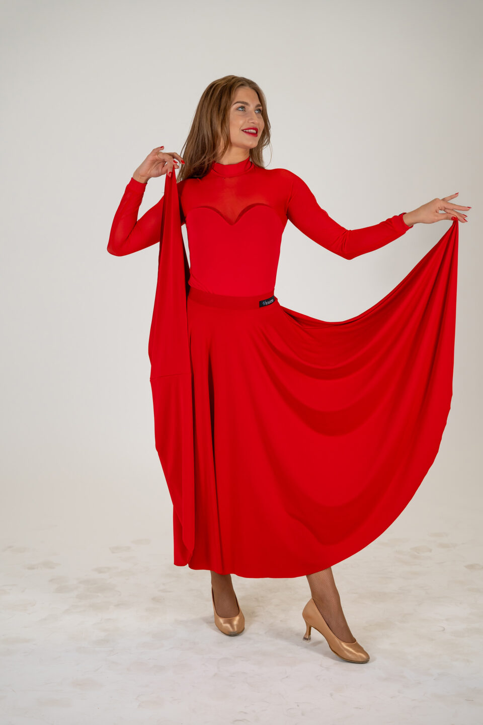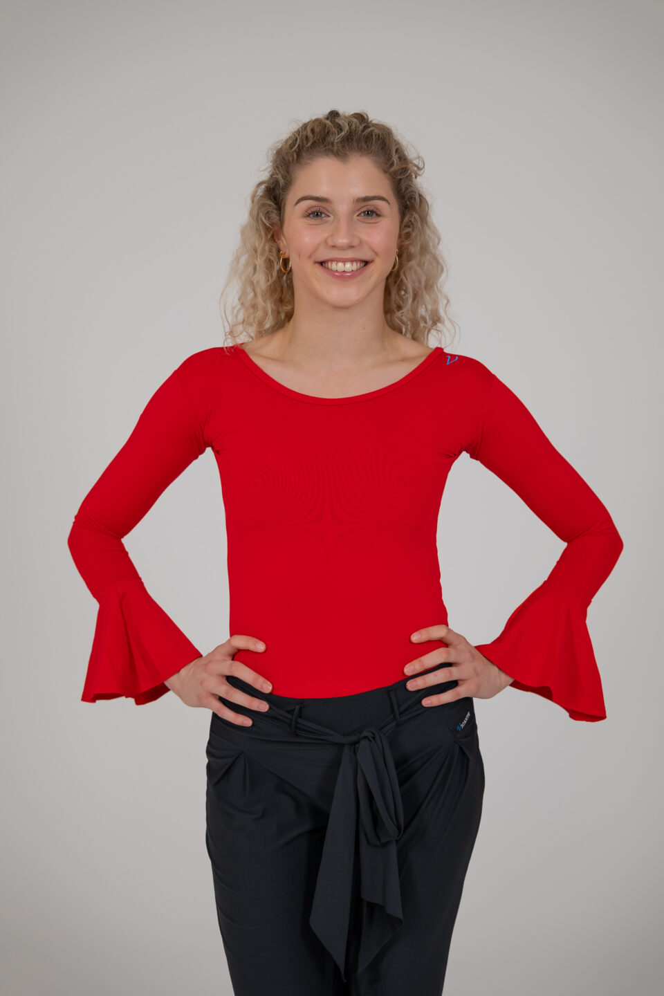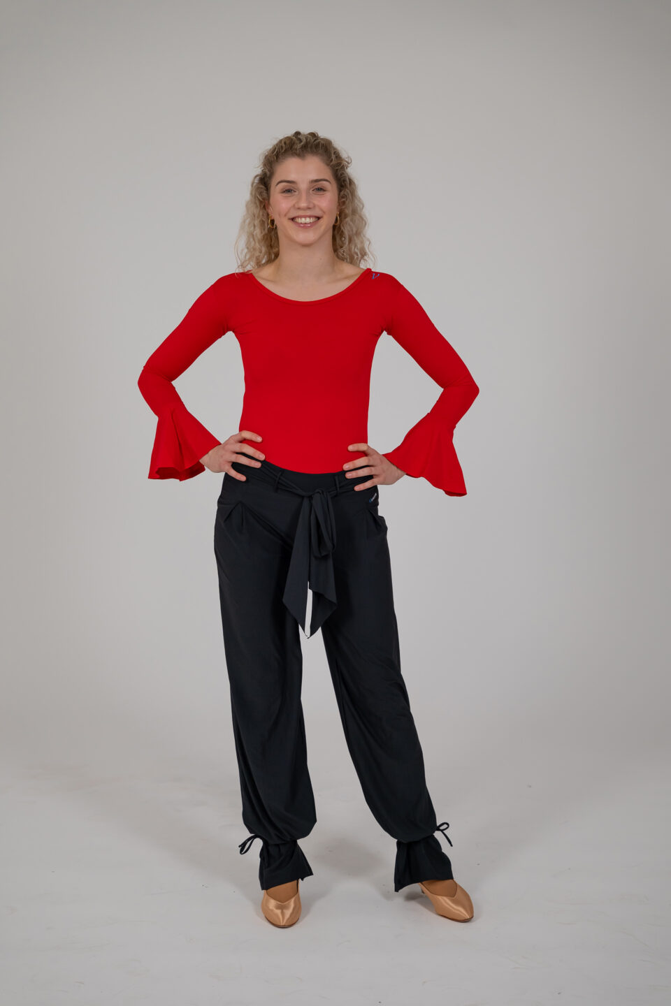 Der Stoff ist sehr elastisch und passt sich daher jeder Figur perfekt an, während die intensiven Farben auf der Tanzfläche hervorragend zur Geltung kommen. Das gesamte Design wirkt sehr elegant und ist daher eine ausgezeichnete Wahl sowohl für das tägliche Training als auch für Workshops und Privatstunden. Dezentes Firmenlogo im unteren Teil des Ärmels.