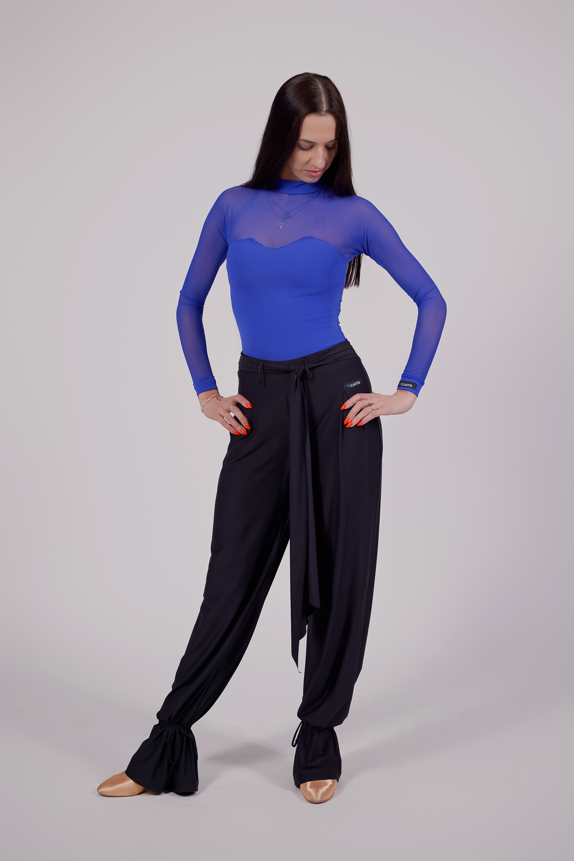 Hose Justine – angenehmes, sportliches und elastisches Material sorgt für ein elegantes Aussehen und höchsten Tragekomfort bei täglichen Trainingseinheiten. Speziell entworfene, zum Binden versehene Hosenbeine gehören zu den angesagtesten Modellen in der Welt des Tanzes.