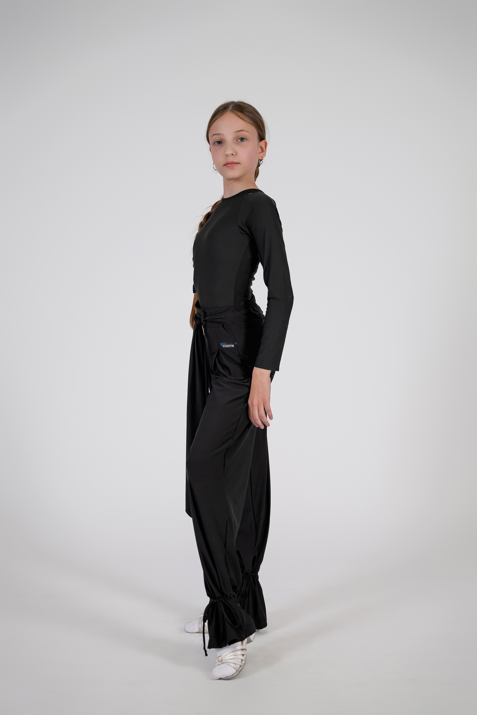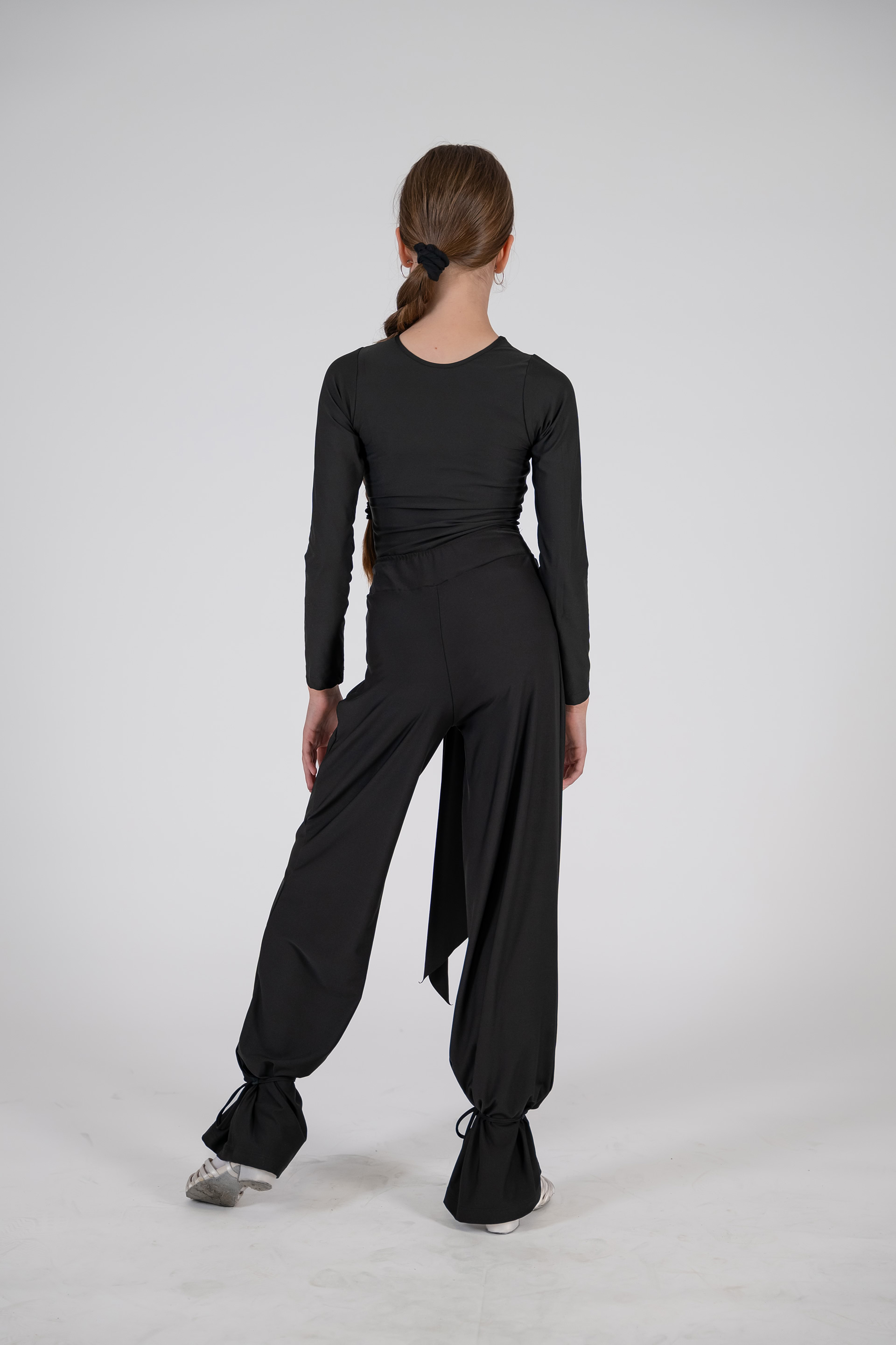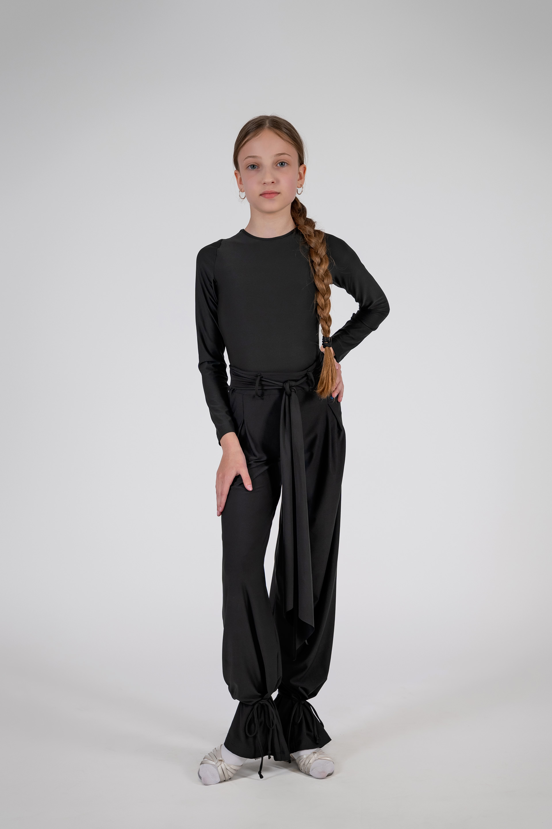 Hose Justine – angenehmes, sportliches und elastisches Material sorgt für ein elegantes Aussehen und höchsten Tragekomfort bei täglichen Trainingseinheiten. Speziell entworfene, zum Binden versehene Hosenbeine gehören zu den angesagtesten Modellen in der Welt des Tanzes.