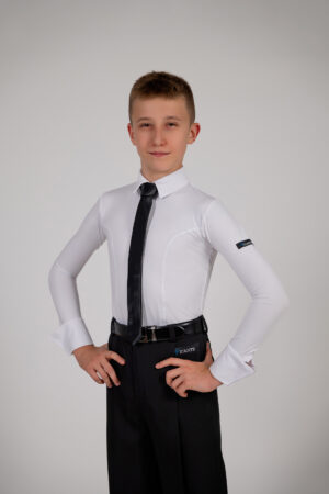 Das Shirt ist aus hochwertigem Sportstoff mit „cool comfort“-Technologie gefertigt. Der spezielle Schnitt ermöglicht eine perfekte Anpassung an die Figur der Tänzer und die Ärmel wurden so gestaltet, dass sie die Figur der Tänzer betonen. Es ist die perfekte Wahl für alle, die einen klassischen, eleganten Look und einen Komfort zu schätzen wissen. Das Hemd eignet sich nicht nur für Tanzturniere, sondern auch für wichtige Trainingseinheiten oder Einzelstunden.