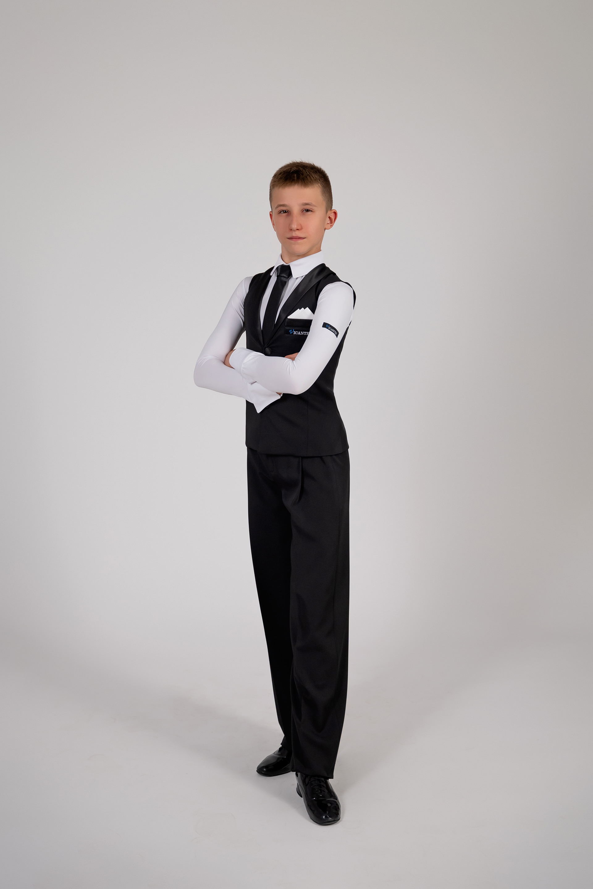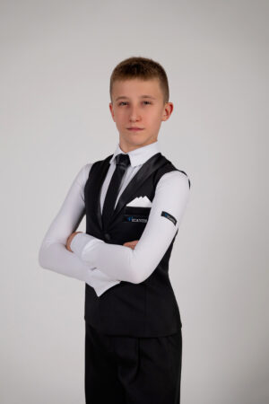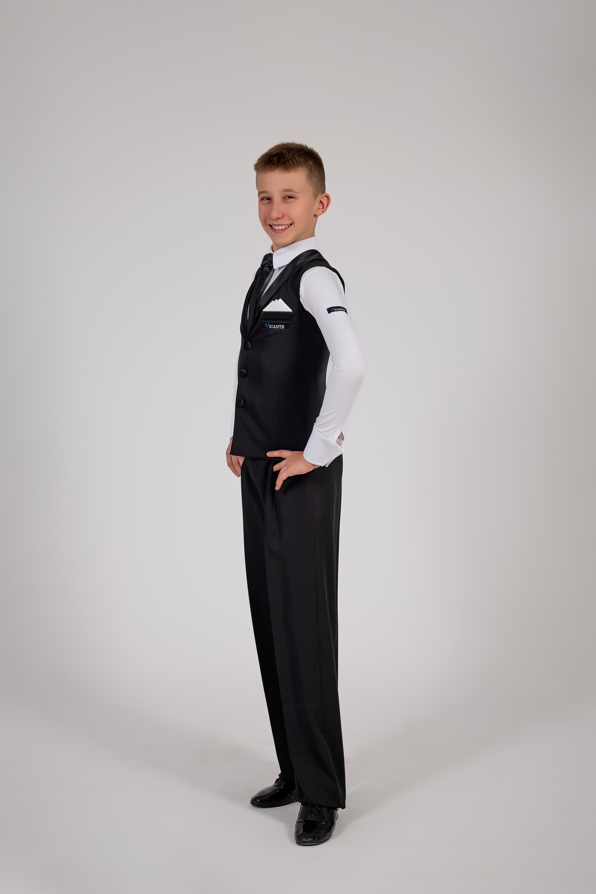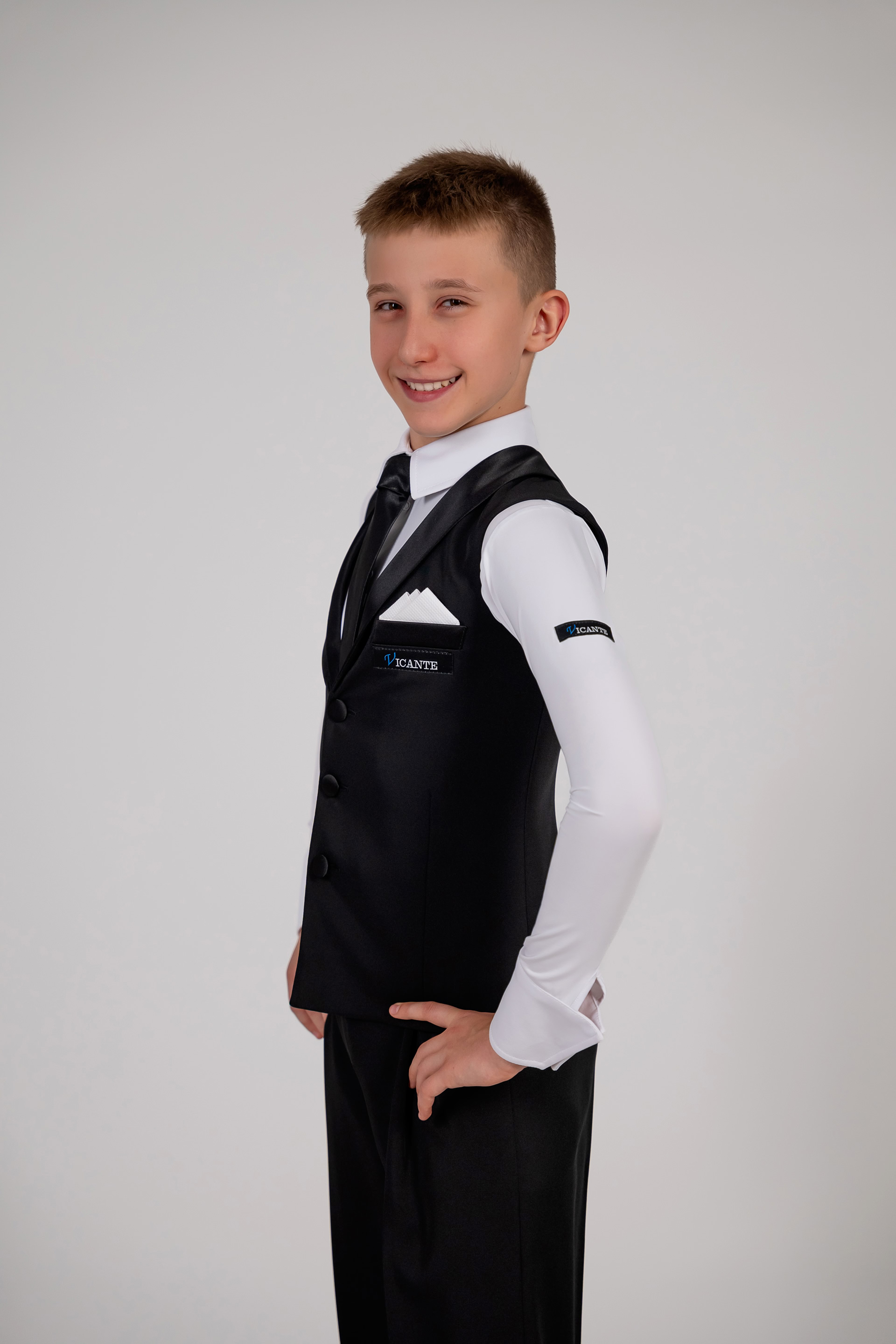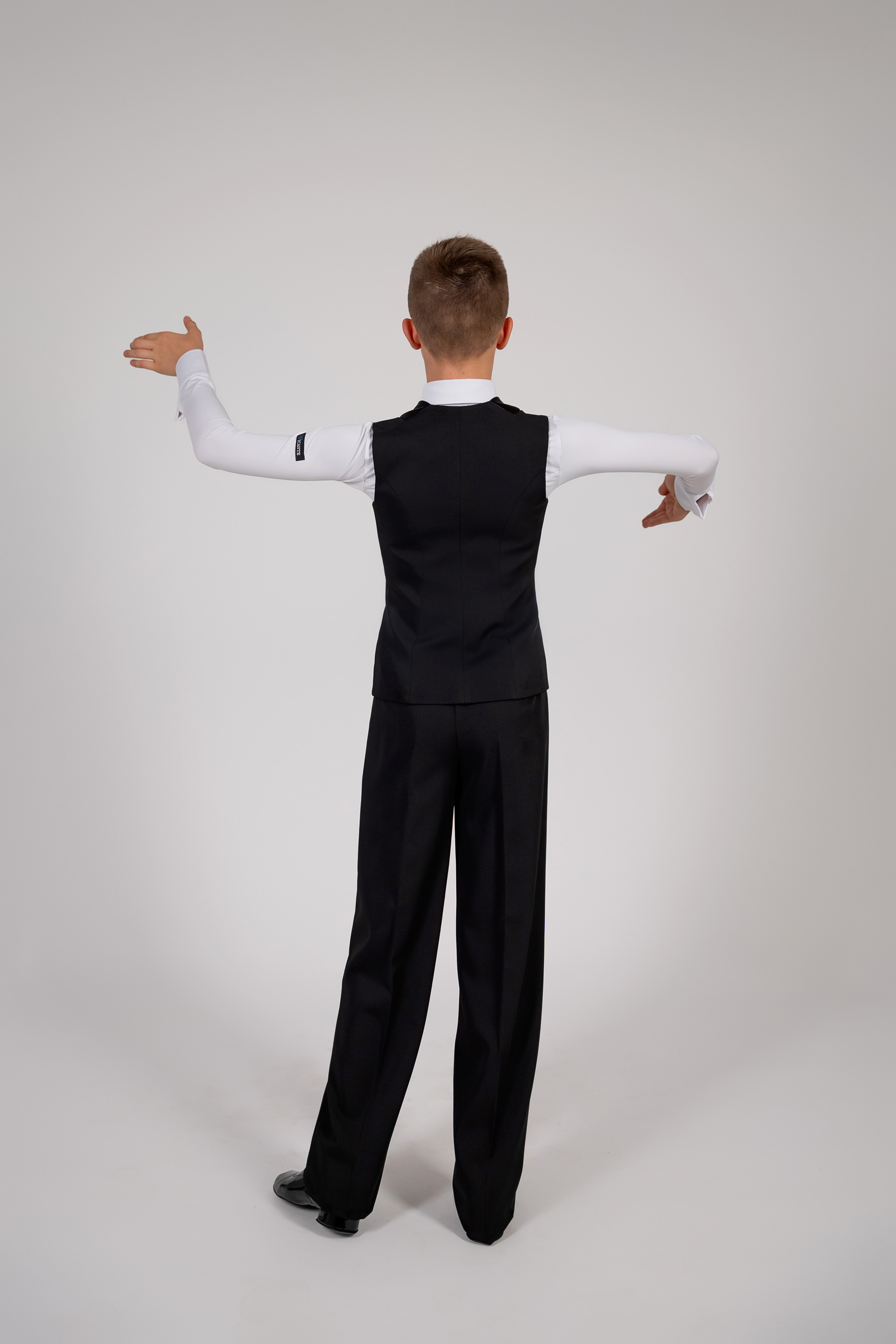 Die klassische Turnierweste, gefertigt aus elastischem Bi-Stretch mit schwarzen Magnus-Satinabschlüssen, ist ein zeitloser Klassiker. Sowohl der taillierte Schnitt als auch die Materialien sorgen für ein hervorragendes Erscheinungsbild auf der Tanzfläche und machen die Weste für jedes Turnier geeignet. Die Weste verfügt über einen ausgeschnittenen Kragen und geformte Schultern, um die wichtigsten Merkmale der Tänzersilhouette bestmöglich hervorzuheben.