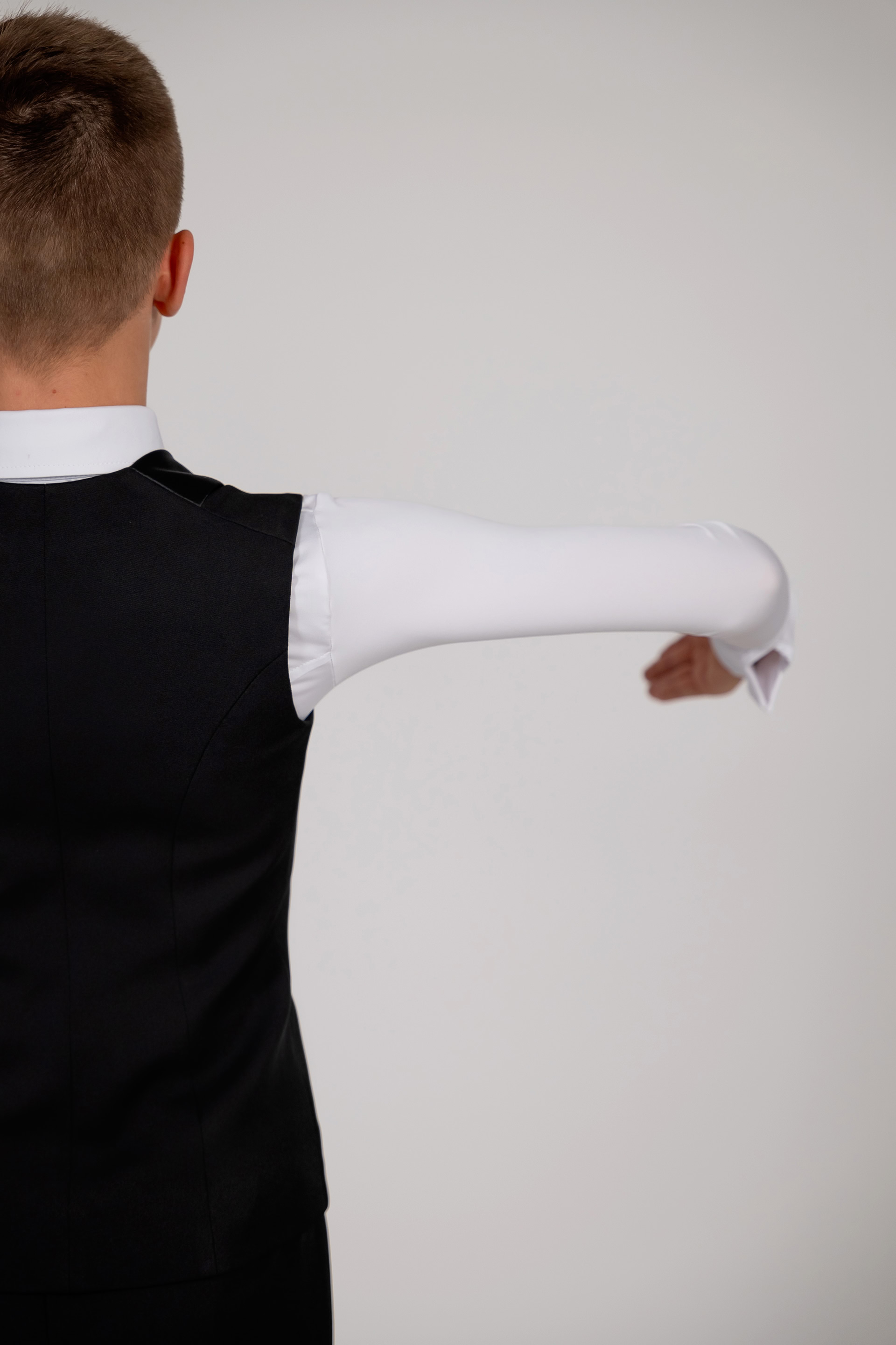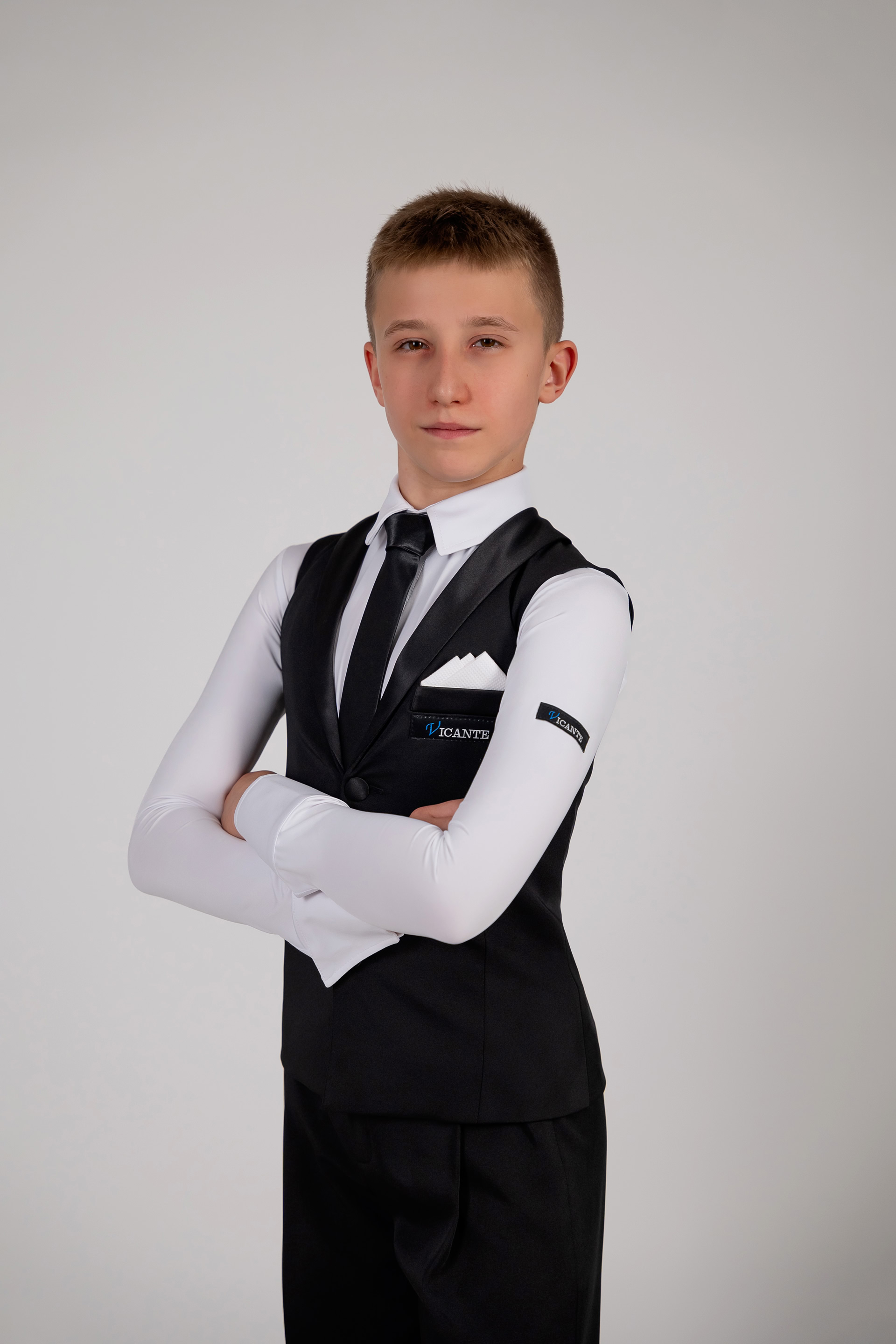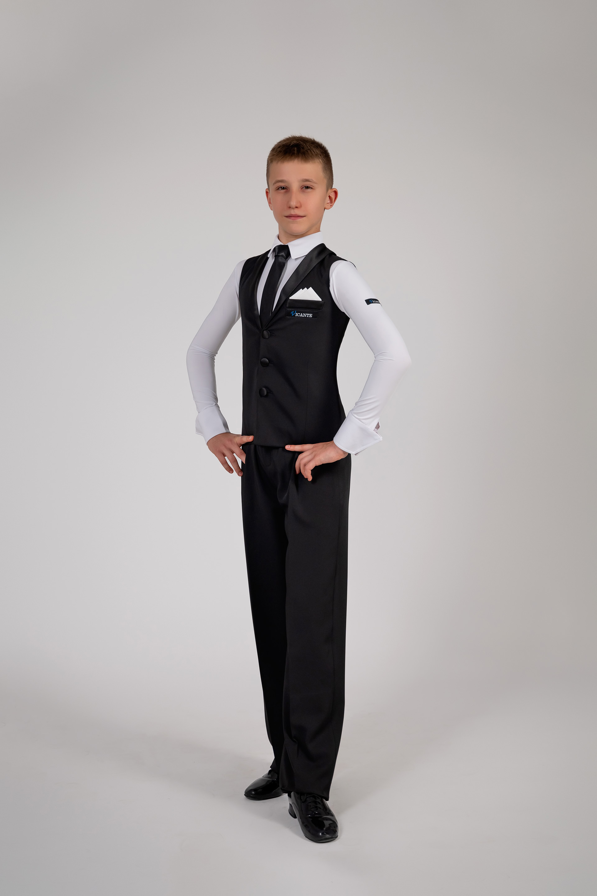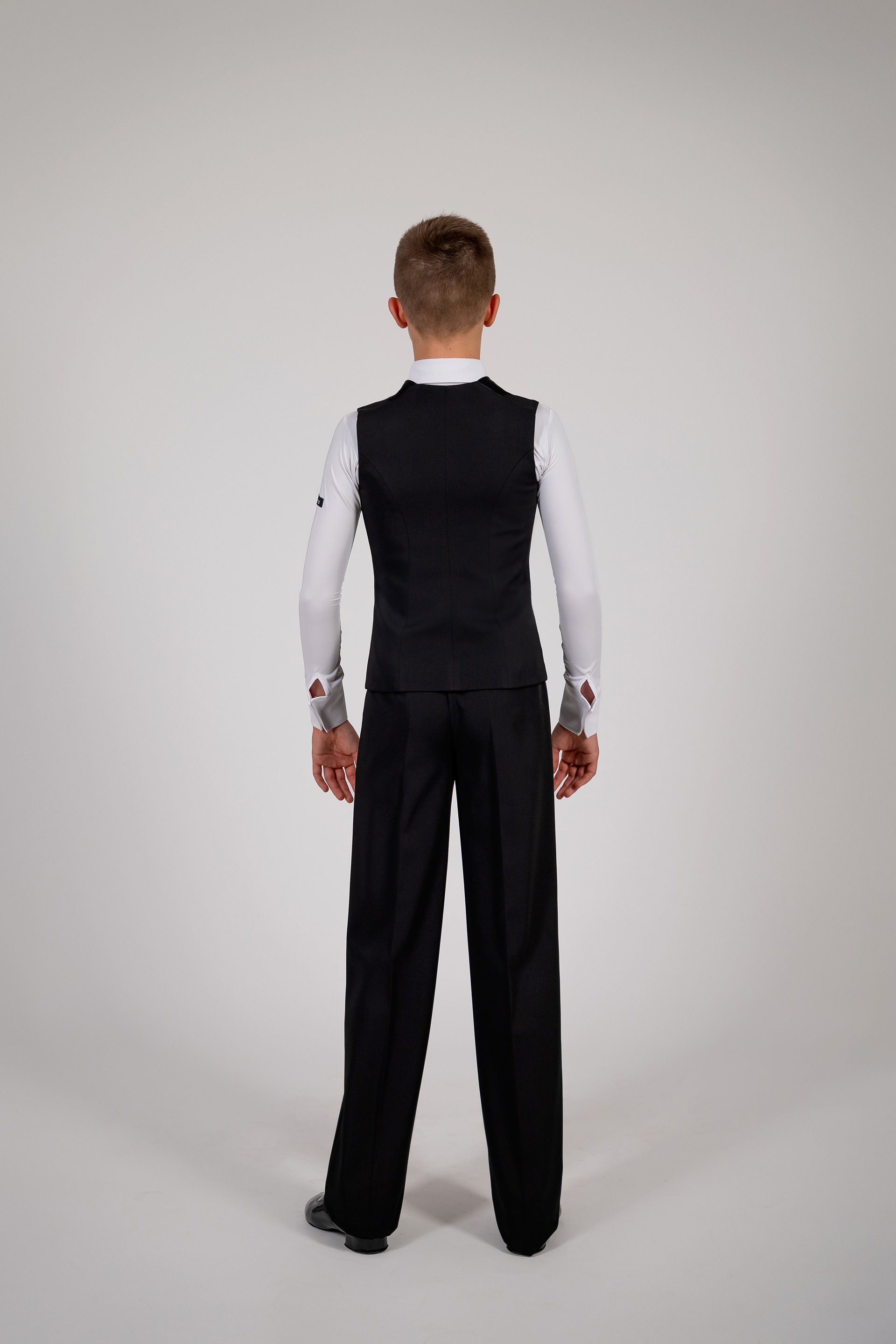 Die klassische Turnierweste, gefertigt aus elastischem Bi-Stretch mit schwarzen Magnus-Satinabschlüssen, ist ein zeitloser Klassiker. Sowohl der taillierte Schnitt als auch die Materialien sorgen für ein hervorragendes Erscheinungsbild auf der Tanzfläche und machen die Weste für jedes Turnier geeignet. Die Weste verfügt über einen ausgeschnittenen Kragen und geformte Schultern, um die wichtigsten Merkmale der Tänzersilhouette bestmöglich hervorzuheben.