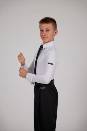 Das Shirt ist aus hochwertigem Sportstoff mit „cool comfort“-Technologie gefertigt. Der spezielle Schnitt ermöglicht eine perfekte Anpassung an die Figur der Tänzer und die Ärmel wurden so gestaltet, dass sie die Figur der Tänzer betonen. Es ist die perfekte Wahl für alle, die einen klassischen, eleganten Look und einen Komfort zu schätzen wissen. Das Hemd eignet sich nicht nur für Tanzturniere, sondern auch für wichtige Trainingseinheiten oder Einzelstunden.