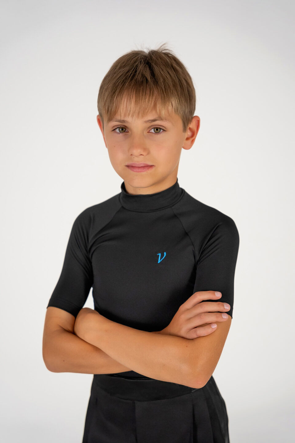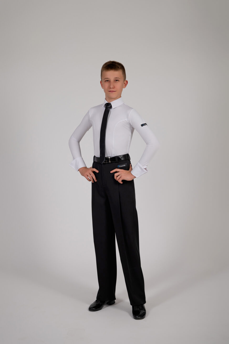 Das Shirt ist aus hochwertigem Sportstoff mit „cool comfort“-Technologie gefertigt. Der spezielle Schnitt ermöglicht eine perfekte Anpassung an die Figur der Tänzer und die Ärmel wurden so gestaltet, dass sie die Figur der Tänzer betonen. Es ist die perfekte Wahl für alle, die einen klassischen, eleganten Look und einen Komfort zu schätzen wissen. Das Hemd eignet sich nicht nur für Tanzturniere, sondern auch für wichtige Trainingseinheiten oder Einzelstunden.