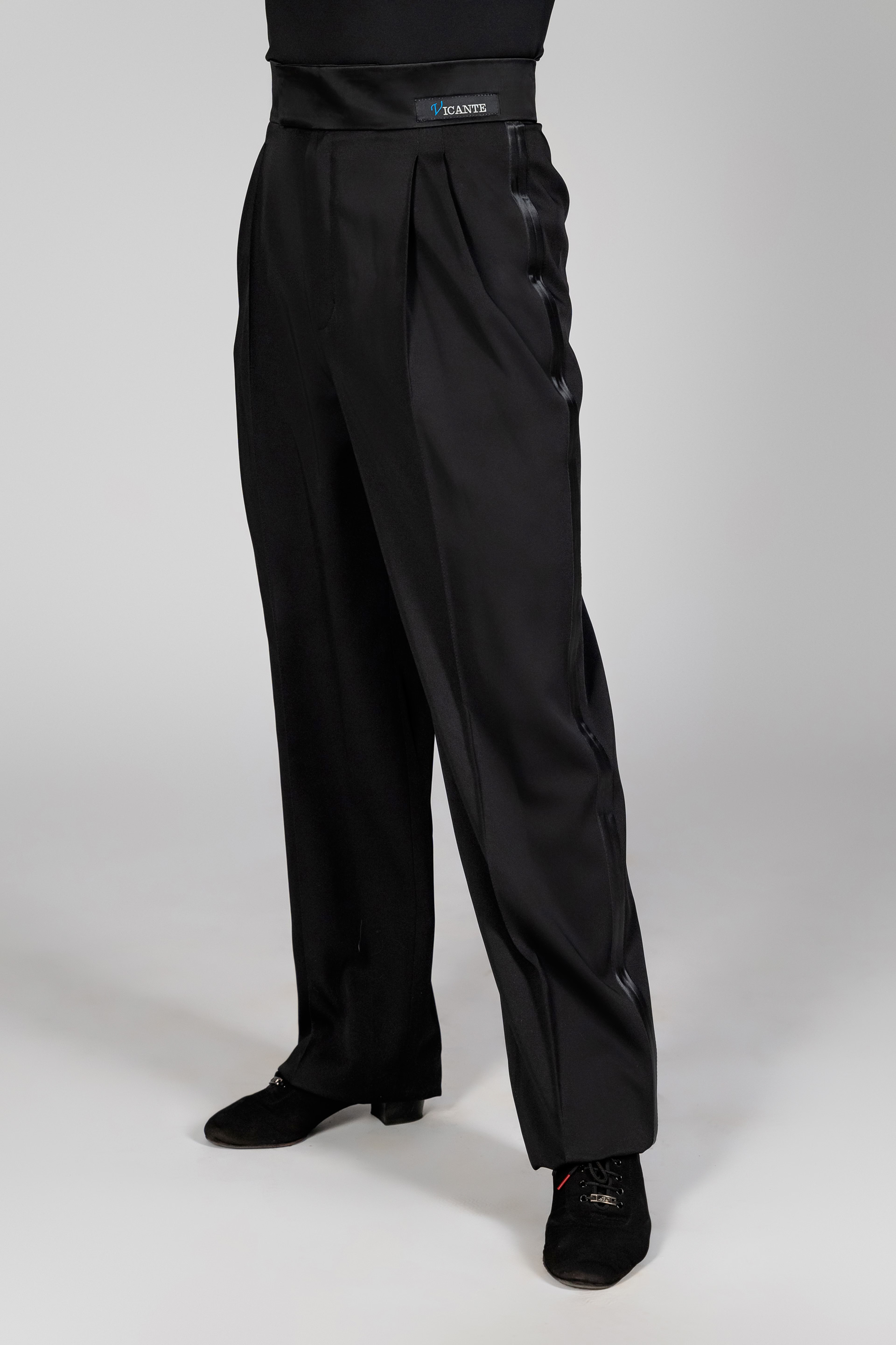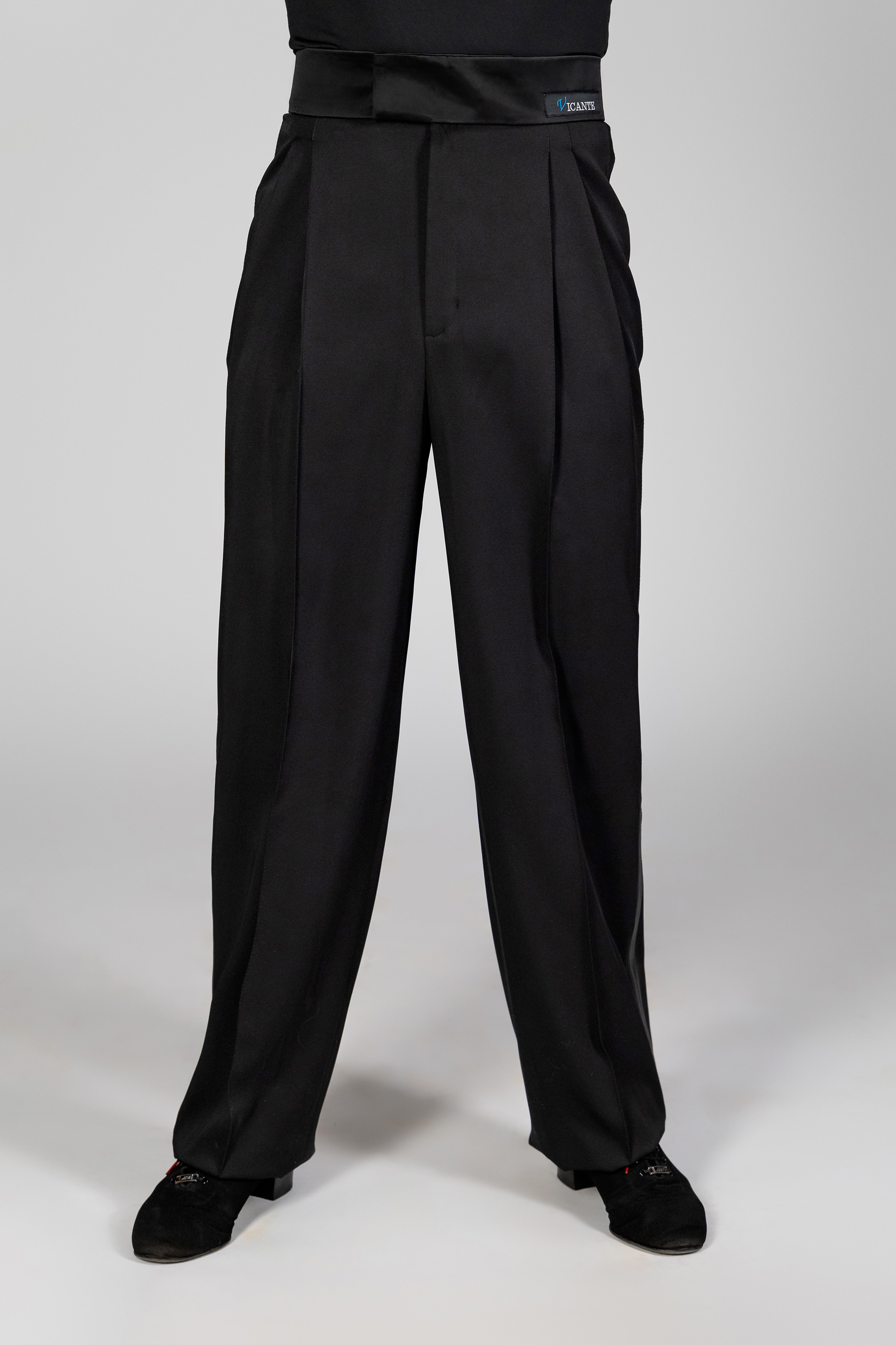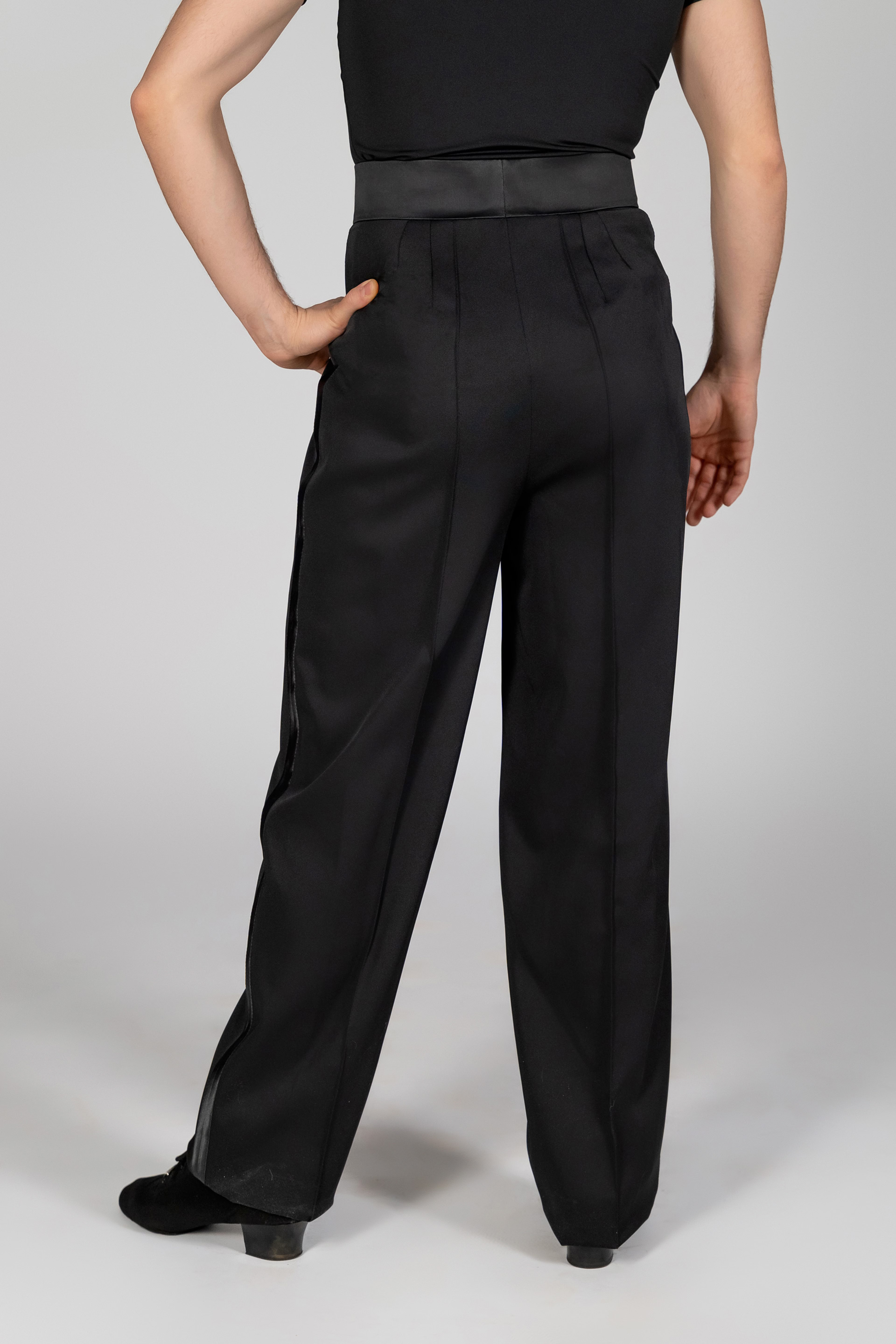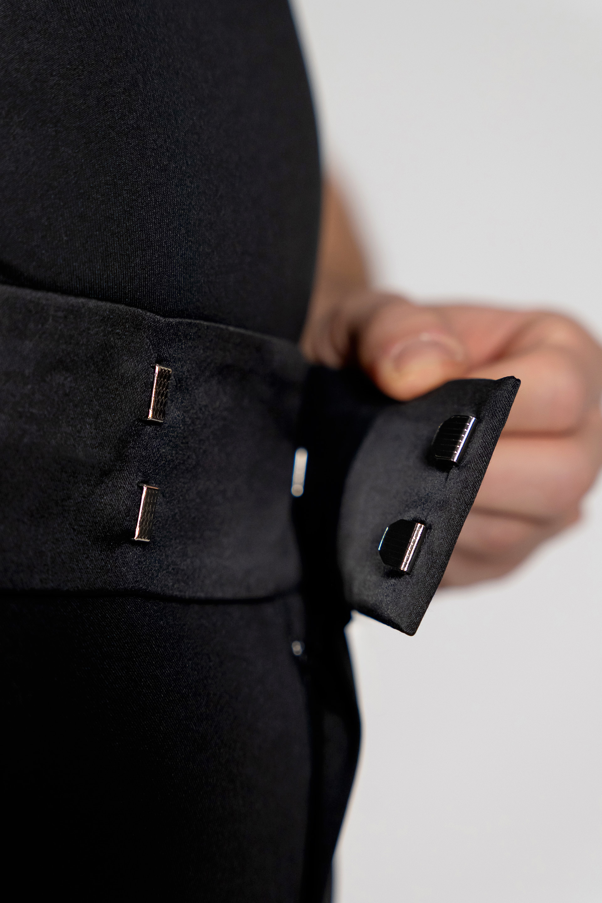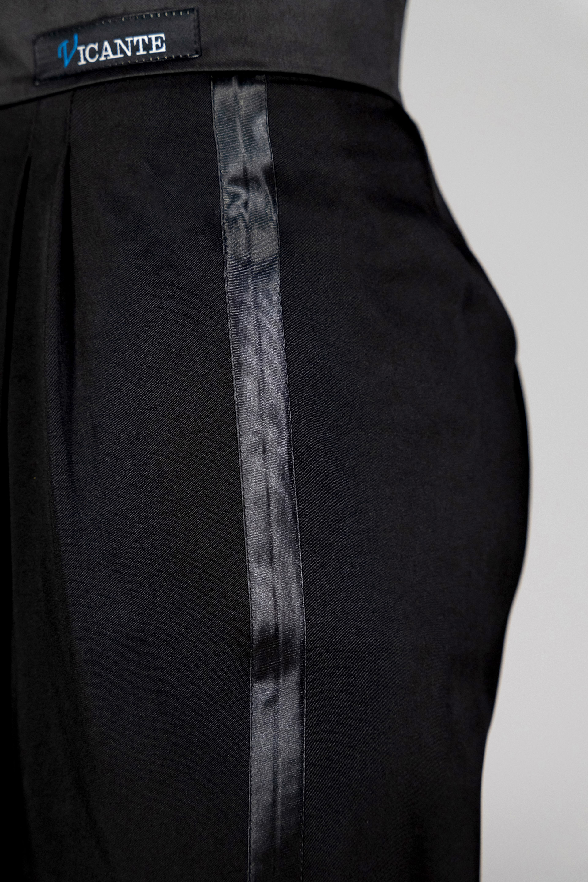 Hose mit Gürtelschlaufen aus hochwertigem, elastischem Bi-Stretch in tiefem, intensivem Schwarz. Eine einzelne Falte auf Hüfthöhe. Ebenfalls erhältlich sind Satin Belt Hosen mit breitem Satinbund (5 cm breit) aus hochwertigem, elastischem Stoff in tiefem, intensivem Schwarz. Zusätzlich verfügt die Hose über seitliche Satinstreifen und doppelte Falten auf Hüfthöhe. Dank der speziellen Eigenschaften der Fasern ist die Hose knitterfrei.