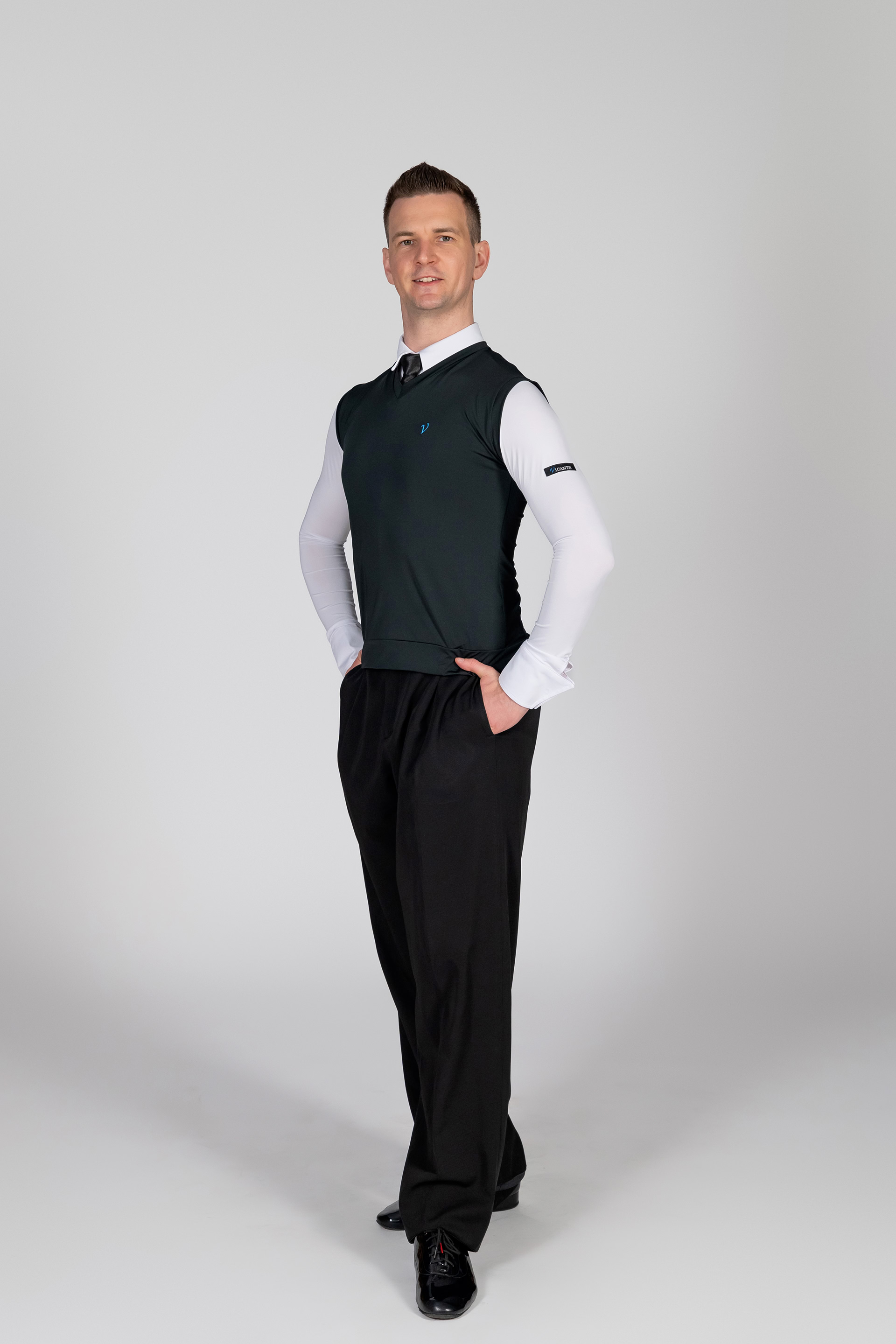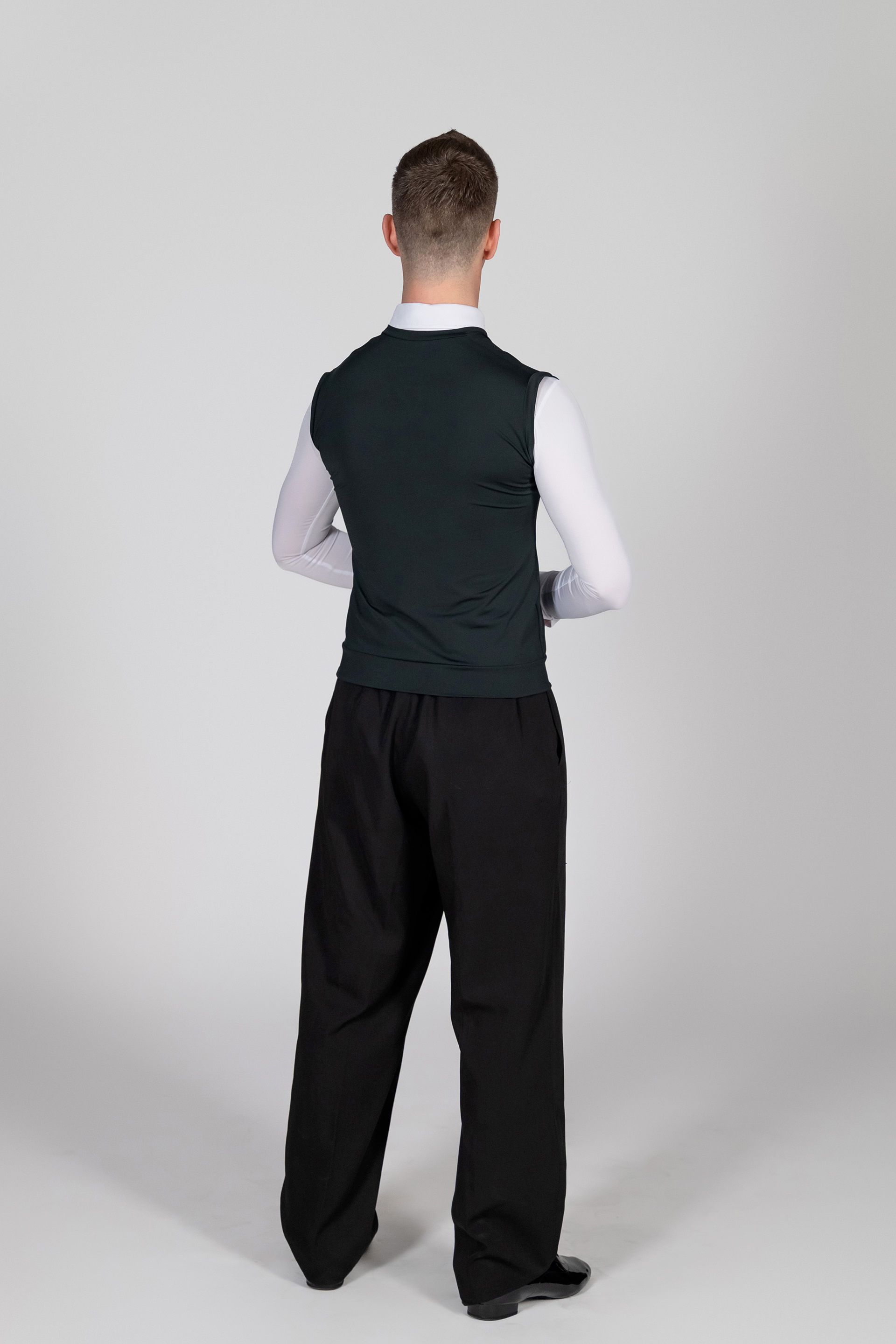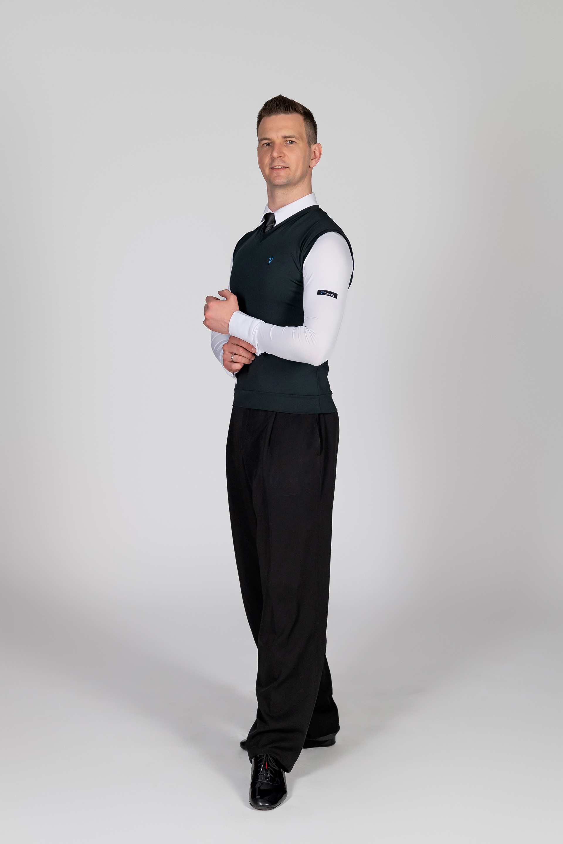 Die Hose mit Gürtelschlaufen ist aus hochwertigem, elastischem Bi-Stretch in tiefem, intensivem Schwarz gefertigt. Eine einzelne Falte auf Hüfthöhe. Dank der besonderen Eigenschaften der Fasern ist die Hose knitterfrei. Ein Muss für jeden Tänzer. Perfekt sowohl für das Training als auch für Turnierstarts im Standard- und Lateinstil.